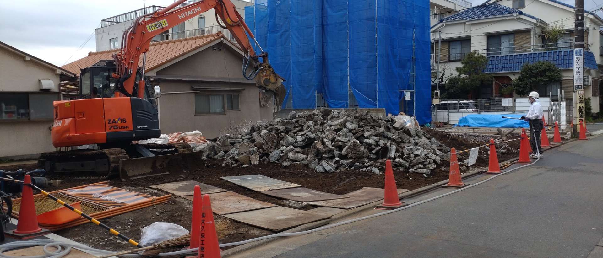 足立区で鉄骨造の解体工事を施工しました。 1階が事務所兼倉庫で2階が住居の建物です。 屋根部を手壊し解体してから重機解体を行いました。…